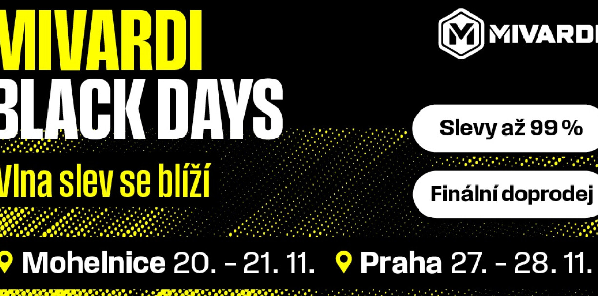 14. 11. 2025 - Slevová vlna roku se blíží! MIVARDI BLACK DAYS přináší slevy až 99 %, totální výprodej a finální doprodej ukončených produktových řad. Ideální příležitost pořídit kvalitní vybavení za naprosto výjimečné ceny.