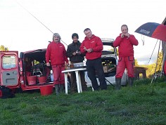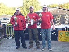 Kluci z týmu Preston - MRK na zatím průběžném druhém místě nasadili těžkou stíhačku a v zádech se k nim přidali i zatím třetí Štemberáci a tak jsme nemohli nechat nic náhodě. V pátek ráno jsme vyrazili na trénink za hustého deště, občas se měnícího v pěkný slejvák. Dlouho jsem nezažil takovou pěknou "bahnitou čvachtačku" a vyndat po treninku zabořenou bednu do bahna byl nadlidský výkon. Během čtyř hodin chytání a zkoušení krmení jsme stanovili taktiku na zítřejší závod. Domluvili jsme se, že zakrmíme na nějakých 60 metrech,protože jsme na kratší vzdálenost neměli záběr a abychom nedostali do krmení oukleje, zakrmili jsme pouze z živého kukly a trošku nastříhaných žížal. Zakrmíme si i předek na nějakých 35 metrech a tam použijeme tmavé krmení a hlínu s hodně živou, hlavně pinku a patentku na oukleje, než najede spodovka.