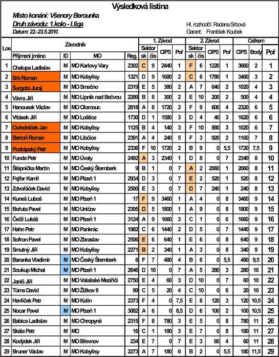 Byla to opravdu bída, na většině je to i vidět a minimálně polovina závodníků prodává cajk a dává se na včely. Ale toto kolo naprosto nic neřeší. Zatím vedou Kukačky s 19-ti body, druzí jsou kluci z Olomouce s 25-ti body, třetí Plzeňáci z rybářského kroužku s 26-ti body, a my jsme desátí s 31,5 body, takže na druhého ztrácíme 6,5 bodu, což je vlastně nic a příští kolo vlastně jakoby znovu začínáme.