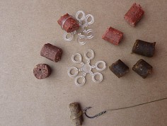 Nejméně známý způsob nastražení je použití různě dlouhých elastických pásků s dorazem, kde je na jedné straně koncová kulička v podobě dorazu, a na druhé malá dirka, kterou opět přímo navlékneme na háček. Tento způsob se spíš využívá na kuličky boilie, ale lze navléknout i peletku. Opět velká výhoda je, že nemusíme měnit montáž.