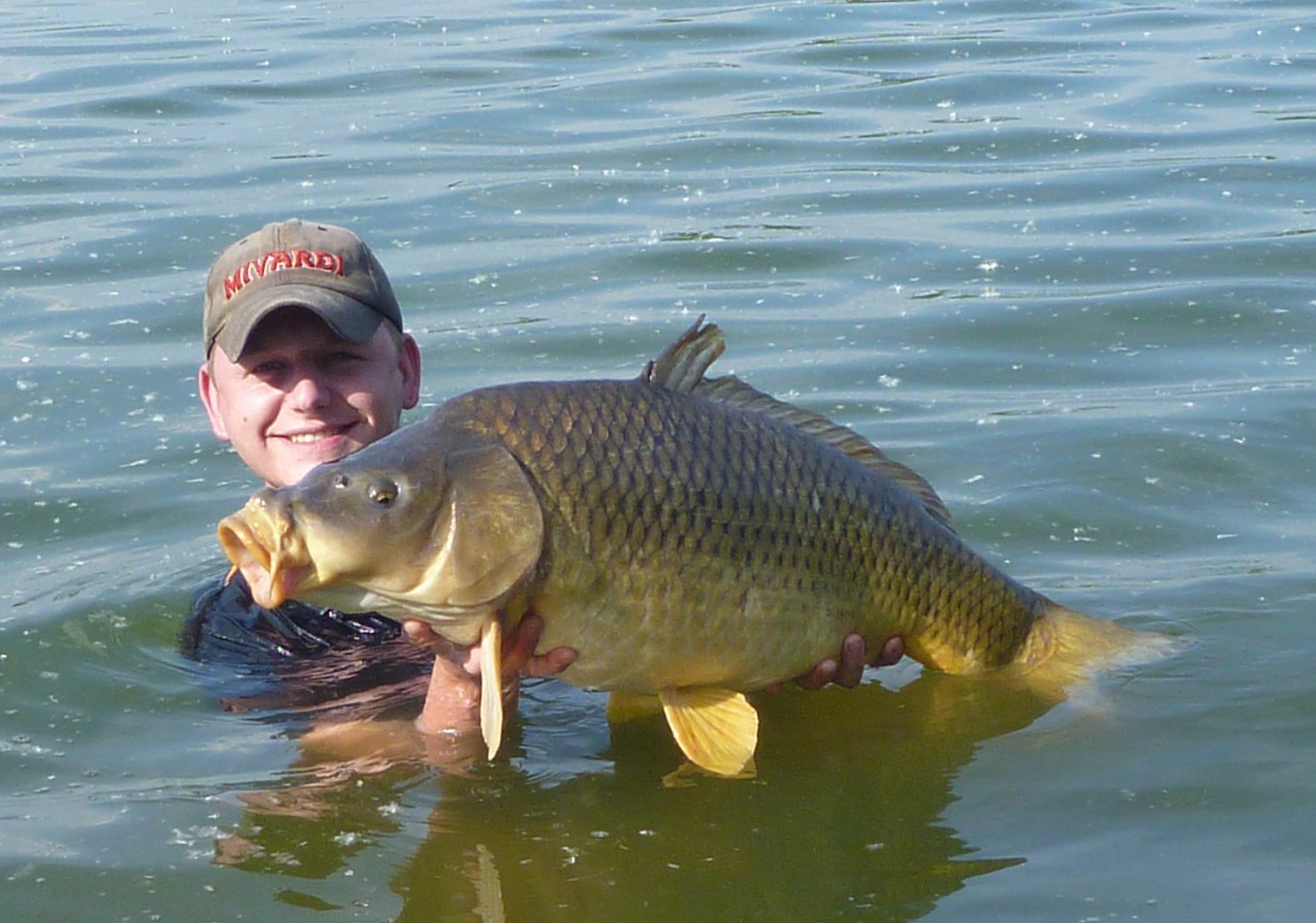 Kapříkům viditelně naše koule zachutnaly, záběry máme tak po patnácti - dvaceti minutách a jsou to samí krasavci. Půjčili jsme si lodičku a kolem bójky jsme rozházeli něco masových pelet a koulí, abychom ryby udržely na krmeném místě. Byla to prostě paráda, a když i táta zahodil svůj feederový prut a bavil se kaprařinou, tak to už je co říci! Najednou je po závodění a taháme jednoho kapra za druhým, až nás bolí ruce. Jen jsem zvětšil koule na třiadvacítku a ještě je pastou obalil, aby si to vzali opravdu ti největší.