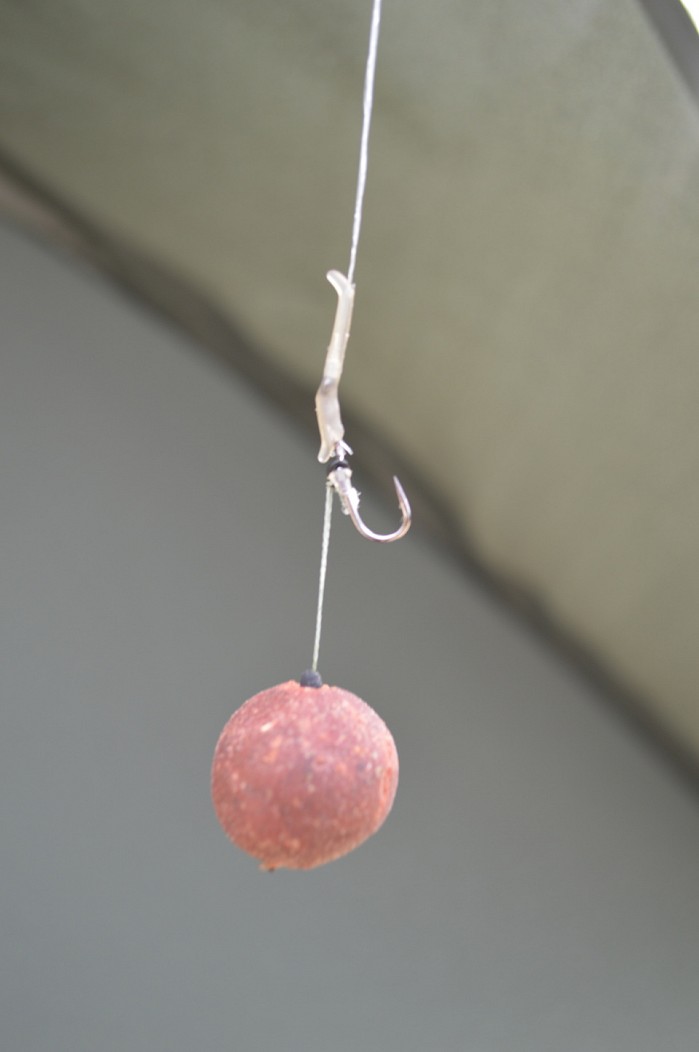 Na levý prut do hloubky kolem 6,2m poblíž paty větší lavice vyvážím montáž s našitou koulí Sea o průměru 24mm. Do okolí ještě rozhazuji asi dvě plné hrsti stejného boilies, ale záměrně o průměru 16mm. Chci si tím zvýšit šanci, že při stejné hmotnosti krmení dostanu do vody a okolí montáže více návnady a ryba tak má větší šanci mou návnadu ochutnat. Navíc tato taktika zde není úplně běžná a není nad to, občas dělat věci jinak než ostatní rybáři kolem. Před návratem z vyvážky zapomínám ještě rozhodit pelety ve formě peletového mixu namacerovaného liquidem Sea a obalené v malém množství boiliesové směsi téže příchutě a tak žádám parťáka, jestli by mi tam se člunem nezajel, zatímco si budu „ šponovat“ vyvezený prut. „ Jo, sjedu tam, jak to chceš rozházet?“ ptá se. Odpověď zní „ Na široko, na větší prostor“. Zavážíme i zbytek prutů a očekáváme děj věcí příštích.. Ve slunečních paprscích usínám unaven v křesle. Krátce po 11hodině mě ze snění vytrhává zvuk hlásiče způsobený pomalým stoupáním swingeru na levém prutu. Procitám hned a kupodivu bez problémů zvládám i rozespalý seběhnout z prudkého pískového svahu k udicím. Zvedám prut z vidliček, vyrážím šňůru z předšpičkového olova. Hned poté odklápím řadič a sleduju, jak se po pár vteřinách začíná docela slušně odvíjet šňůra z cívky navijáku. Ptáte se proč? Proč nedržím rybu hned po záběru na napnuté šňůře a nezačínám zdolávat? Odpověď je prostá – osvědčilo se nám to. Tahle lokalita je v plné sezoně z velké části zarostlá „ trávou“ a je zde i dost jiných překážek. Po záběru vypadne z gumičky kámen a ryba tak odplouvá bez zátěže a tím, že ji hned nezdolávám, ale udělám pravý opak, tedy odklopím řadič, vůbec netuší, že se něco děje. Tím pádem se nesnaží „ vymést“ některý z trsů trav a zbavit se tak montáže. Až v okamžiku, kdy se se člunem dostávám až téměř k rybě, na posledních pár metrů, kde mám na šňůře šokový návazec, začínám zdolávat. Téměř vždy pak začíná rodeo a kapři naplno projevují svou bojovnost. Díky velmi čisté vodě na této lokalitě a polarizačním brýlím jsou poslední fáze zdolávání silným zážitkem pro každého zarytého kapraře.