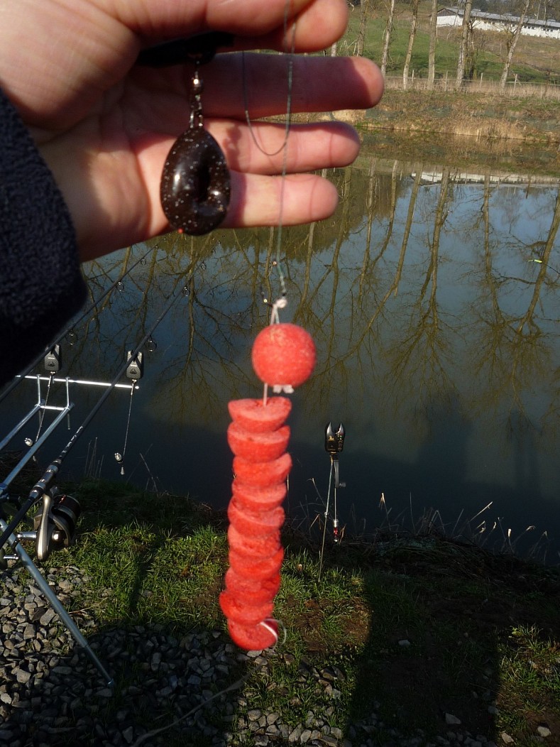 Konečně nadešel ten báječný okamžik, kdy jsem měl všechny věci zabalené v autě a pelášil jsem ven z Prahy k vodě. Počasí bylo nádherné, přes den svítilo sluníčko a jaro bylo cítit všude ve vzduchu. Nestačil jsem se ani pořádně pokochat a byl jsem na místě. Kluci přijeli chvilku přede mnou a v našem dočasném táboře nastal velmi čilý ruch. Než jsme nanosili všechny věci z auta, dali je na své místo, postavili přístřešek, stojany, rozložili pruty, připravili si ty správné montáže, uplynulo spoustu času, ale šlo nám to báječně od ruky. Z naše krmeného místa se občas udělaly bubliny, a nám bylo jasné, že kapříci už na nás čekají. Každopádně nás to hodně nabilo a zvedlo nám to ještě více náladu. Domluvili jsme si tři místa, kde bude každý z nás chytat a jen tak - tak jsme stačili za světla nahodit.