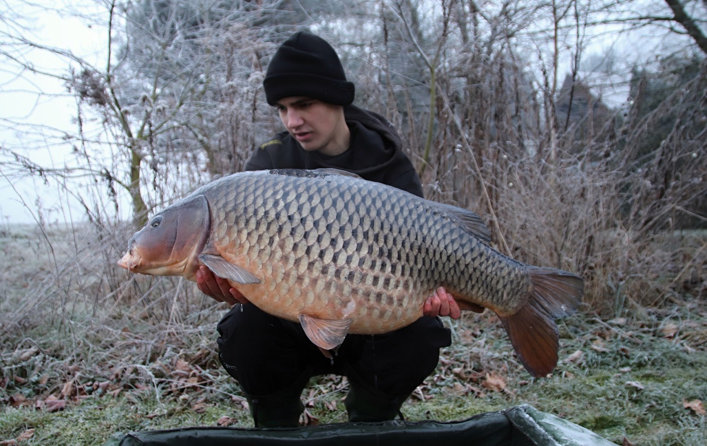 S postupem času nám pruty začínají mrznout a obalovat se ledem. Hned první ráno dostávám krásnou plynulou jízdu! Kousky ledu odlétávají z navijáku, bomba! Ryba si to hned namířila po proudu! Volám na Bobra, na zimní poměry začíná opravdu nekonečná zdolávačka. Po 25 minutách máme kapra konečně v podběráku! Ruce mám zmrzlé, ale jsem šťastný! Opravdu nádherná ryba, a to hned 2. ledna! Jak se říká, jak na Nový rok, tak po celý rok. Snad se mě štěstí bude držet :-)