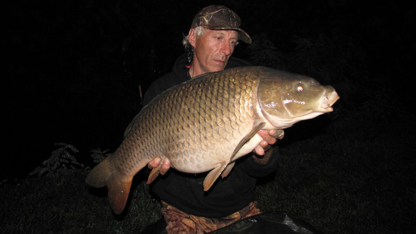 Vše nachystané, a tak na jednu udici jsem tuto nástrahu umístil. Při tak malé aktivitě ryb jsem na to vsázel. Dlouho se nic nedělo a my převezli opět na noc. Než zase spadne mlha. Kolem jedné v noci se Mirkovi ozval příposlech. S ledovým klidem vstal a dle záběru si mrmlal pod nos, že to bude zase malý kapřík. Já v klidu leže, snad to zvládne bez mé asistence. Po patnácti minutách se vrátil a on to kapřík nebyl. Ale jeden z těch, na které jsme líčili. Kapr šupináč v nádherné kondici 88cm a 15.20kg po odečtení podložky.