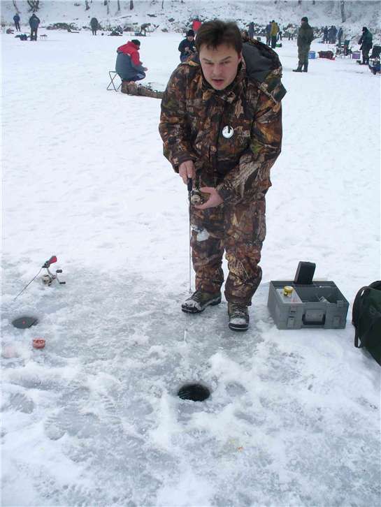 Po nezbytné prezentaci jsme se všichni rozprchli po celé ploše lomu a každý si vyvrtal dvě dirky v důvěře, že to jsou právě ony, které mu přinesou kýžený pocit z přelstěné ryby.
