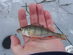 Jiné to je, když chceme lovit na revíru okouny, candáty, nebo jiné dravce, kteří jsou na tomto revíru přirozeně doma. Samozřejmě vynechávám lov štik na napíchnutou rybičku, bavíme se o umělých nástrahách. Přelstít hejno okounů je už práce pro opravdové mistry, tady je zapotřebí využít všeho umu, sakra zjemnit a nabídnout rybám například sedmičku fluokarbonový návazec s dvacítkou červeným háčkem, mikromarmyškou s připíchnotou umělou patentkou. Pokud se nám podaří takové hejno najít, máme o zábavu postaráno. Okouny lze i stáhnout krmením, jen nesmíme zapomínat, že je zima a tak krmíme co nejméně, zhruba dvě - tři deci na vycházku hodně tmavým krmením říznutým hlínou, aby to udělalo zakrmovací obláček, do kterého ryby rádi najíždějí. Tu a tam můžeme i stříhnout dvě - tři žížalky, aby ryby cítili jejich zápach.