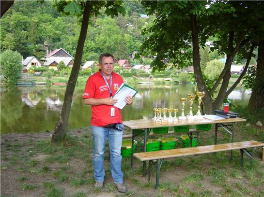 Konečně přichází signál oznamující, že nadešel čas se srotit poblíž stánku za účelem vyslechnutí pokynů a následného losování. Když se všichni jakštakš došourají, chápe se slova Jirka Janků a coby rodilý řečník nás sezanmuje se změnami pravidel pro letošní sezónu jak v soutěžním řádu, tak i v rozdělování cen dodávaných tradičním sponzorem naší druhé ligy - firmou Black Bass, kterážto pochopitelně plně stojí i za naším týmem. V letošní sezóně prý bude oceněn věcným darem každý z vítězů sektorů a na konci pak obdrží peněžní ceny každý ze zúčastněných týmů - jejich výše bude pochopitelně odvislá od umístění každého týmu.