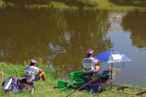 Zazněl signál základního krmení a všichni naši závodníci začali střílet prakem připravené koule s krmením na pečlivě proměřené a zmapované místo, kde chtěli chytat. Jediný Roman dokázal krmit rukou a bylo se opravdu na co dívat. Zbynďa o základním nakrmení svého svěřence řekl: „Naházel to tam tak přesně, že na dně musel z koulí krmení udělat sněhuláka. Divím se, že o něj při chytání neváznul! :-)" I u ostatních bylo vidět, že mají lov s odhozem pěkně v ruce. Hned po následujícím signálu zahajujícím závod se dostavily i první drobné ryby. Taktika vycházela do puntíku. Za první hodinu měli všichni na lehké propady naloveno kolem 20 ryb a u některých se povedlo zdolat i pěkné cejny. Ostatní velké cejny nachytali v průběhu druhé a především třetí hodiny, kdy po nich šli naprosto cíleně. Ostatním státům, které lovily hlavně velké ryby, ve finále právě hmotnost drobných ryb chyběla. Výborně se dařilo také družstvům Slovenska a Polska, která vsadila na lov s desetimetrovými biči. U ostatních národů bylo vidět, že se s řekou nemohou srovnat a nestačily najít všechny důležité detaily vedoucí ke spolehlivému výsledku. Na některých sektorech se jim sice dařilo, ale na jiných nemohly chytnout rybu.