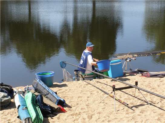 Už před sobotním závodem jsme věděli, na jakých sektorech budeme sedět. Po losování v 7:30 jsme se také dozvěděli čísla. Mně bylo přisouzeno číslo A16, Martin seděl ob 3 místa na B1, Jirka vyfasoval C11 a Mirek D13. Na závod jsme také míchali krmení, které nám doporučil místní prodejce živých nástrah a který nám celý týden radil. Bylo červené, lehké a dobře lepilo. Bylo určené především na větší ryby - parmy nebo čefala a měli jsme ho používat výhradně na děličku. Na kratší děličku za vezírkem jsme měli asi 4 litry hlíny na patentky. Celkem jsme měli 0,5l malé patentky, 1,75l napěchovaných bílých červů a ve zbylé 0,25l byli červení červi a pinkies. Na chytání jsme měli také 2 krabičky kvalitní velké patentky, která se i v tom horku po třech hodinách mrštně hýbaly. Příprava začala tradičně v 8:30, závod o dvě hodiny později. Ještě bych chtěl podotknout, že naše sektory byly rozpůleny na poloviční. Tudíž jeden sektor měl čísla A1 až A9 a druhý A10 až A18, je to podle nových pravidel FIPS.