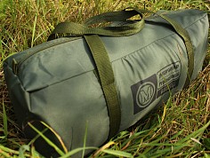 Bivak Professional je klasickým bivakem střední velikosti. Vnitřek je však nebývale prostorný především díky velice strmým stěnám a dalším plus je, že boční stěny jsou prakticky v jedné linii. Dvě lehátka tak k nim sednou jako ulitá. Jinak je bivak vybaven stejnými šikovnými prvky, jako ostatní bivaky téže značky - držáky prutů, osvětlená táhla zipů, závěsná očka po celé kopuli, ventilační klapka nad vchodem, rozměrná přední a zadní okna. Především závěsná očky mi udělala radost a věšel jsem na ně doopravdy, co šlo. Pojďme se mrknout na to, jak probíhala stavba.