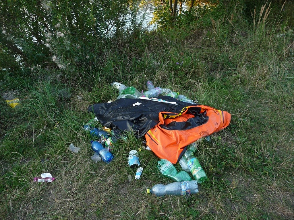 Jak je vidět, tak dle přiložené fotografie dělají nejvíce nepořádek u vody lidé, co se sem jezdí koupat. Viz propíchnutý člun. Ale nedělám si iluze o tom, že to dělají i rybáři, protože v odpadcích najdete plechovky od kukuřice, obaly od zakrývacích směsí, obaly od chemických světýlek, krabičky od červů, … Například letos na podzim jsem byl na Bagru u výplaviště. Opět když se projdete po výplavišti, tak naleznete: propíchnutý člun, boty, plechovky od piva, lahve od vína a piva, ale také velkou plastovou nádobu, do které jsou udělané otvory a je u ní špagát. Takže je to rezervoár na nástražní rybičky, který si zde někdo udělal, aby nemusel rybky, vždy po příjezdu na toto místo chytat. Má je tak uvězněné v nádobě na několik dní. Nádoba je pak vhozená do vody. Že by to udělal rybář? Ano.