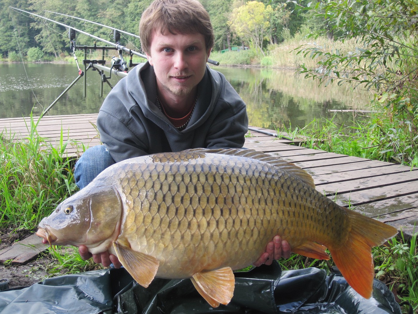 Je vidět, že rybám zachutnala frankfurtská klobása. Než stihnu vrátit jesetera zpět, tak i kamarádův zvukový signalizátor zní na celý rybník. Po záseku ryba neustále odmotává vlasec a né a né se zastavit. Po 15 minutovém zdolávání se konečně Michal může pochlubit kaprem, který má 17,4 kg a 96 cm.